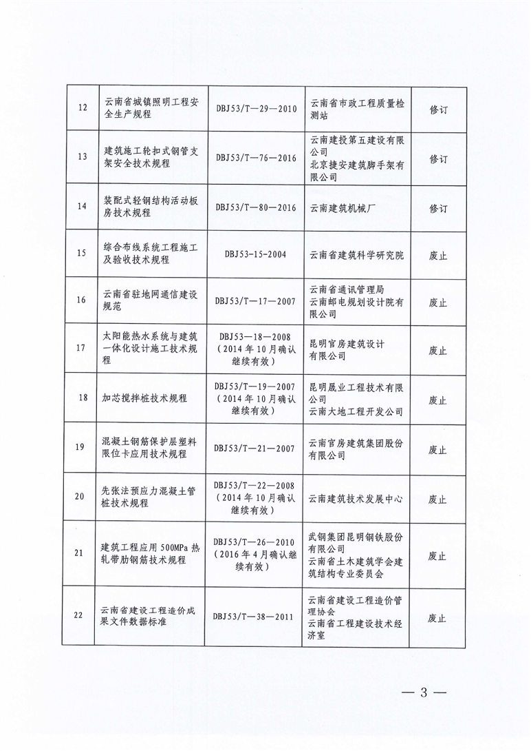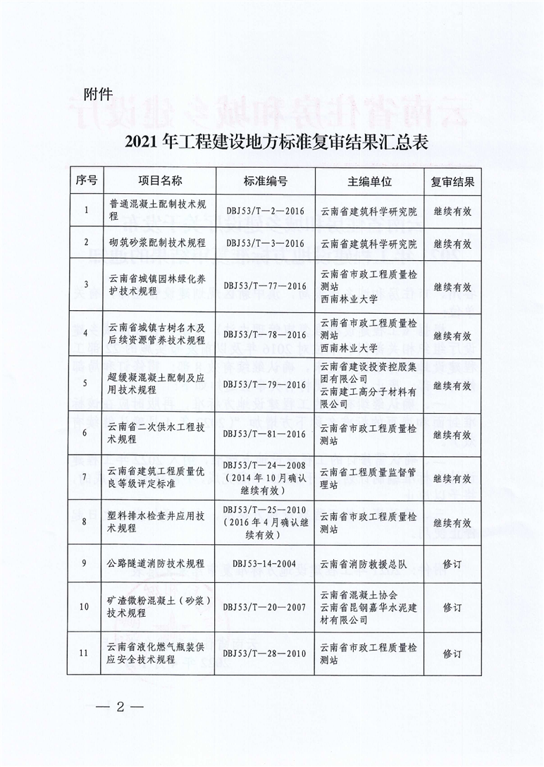 云南省住房和城鄉建設廳關于發布2021年工程建設地方標準復審結果的通知