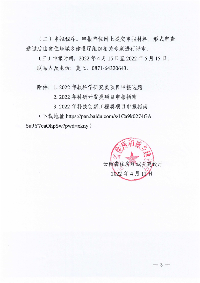 云南省住房和城鄉建設廳關于組織申報2022年科學技術計劃項目的通知