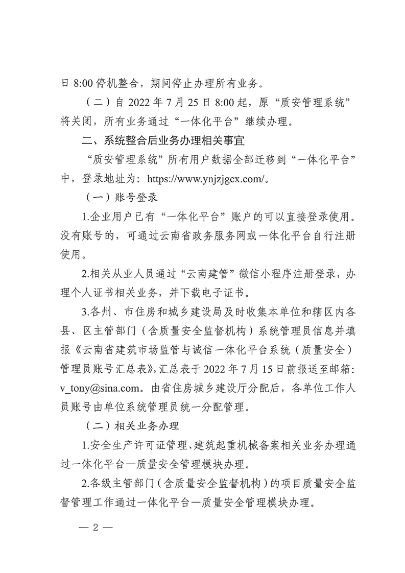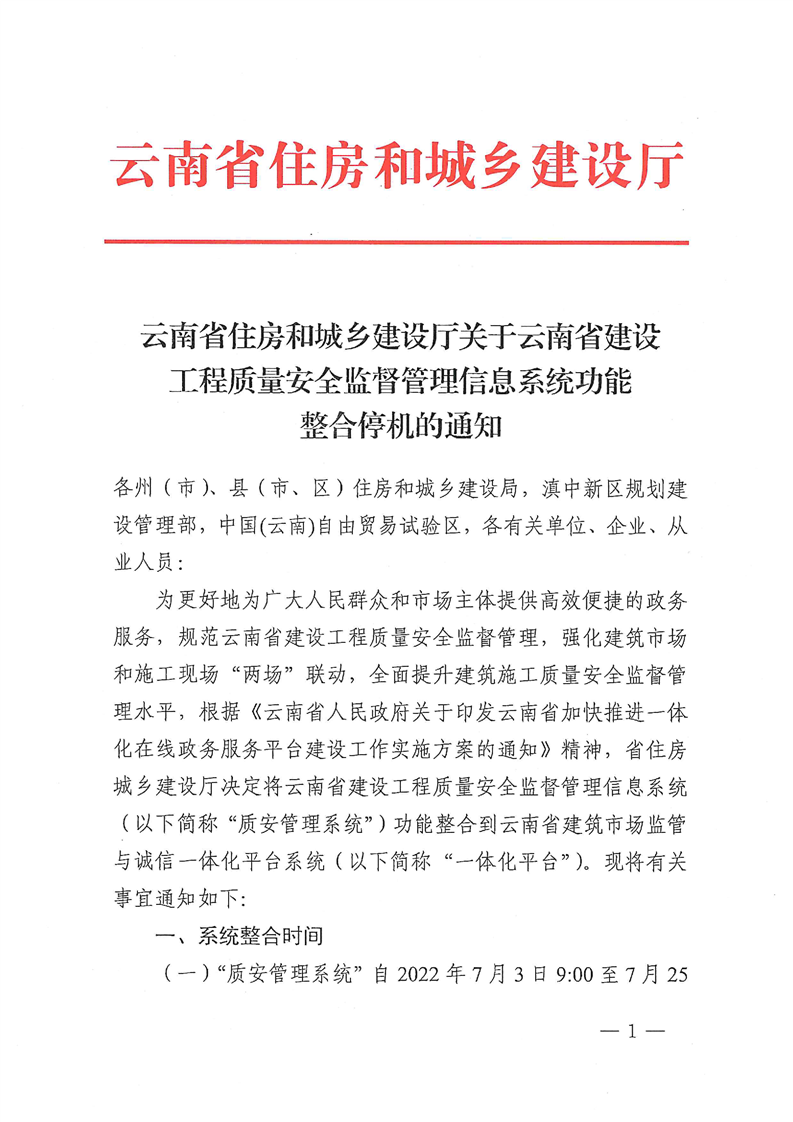 云南省住房和城鄉(xiāng)建設(shè)廳關(guān)于云南省建設(shè)工程質(zhì)量安全監(jiān)督管理信息系統(tǒng)功能整合停機的通知