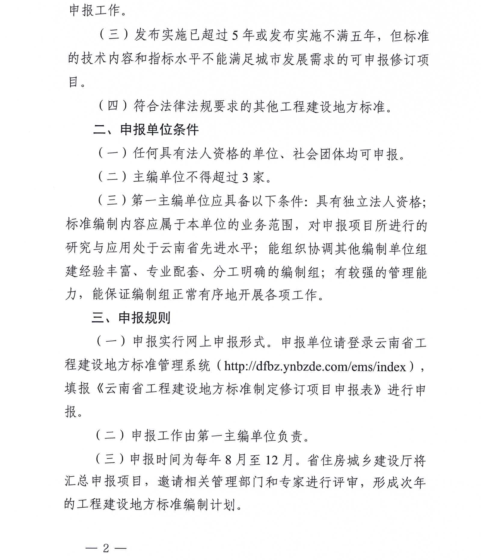 云南省住房和城鄉(xiāng)建設(shè)廳關(guān)于申報(bào)工程建設(shè)地方標(biāo)準(zhǔn)編制項(xiàng)目的通知